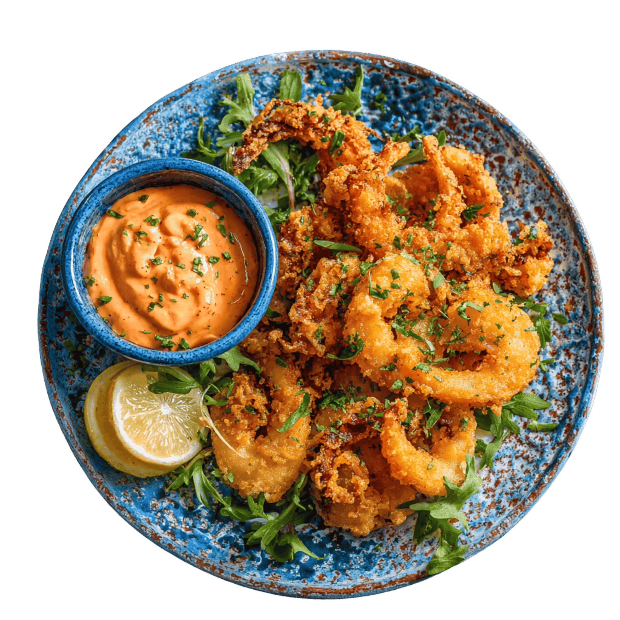 Frittierter Tintenfisch mit Spicy Mayo Dip und Limette